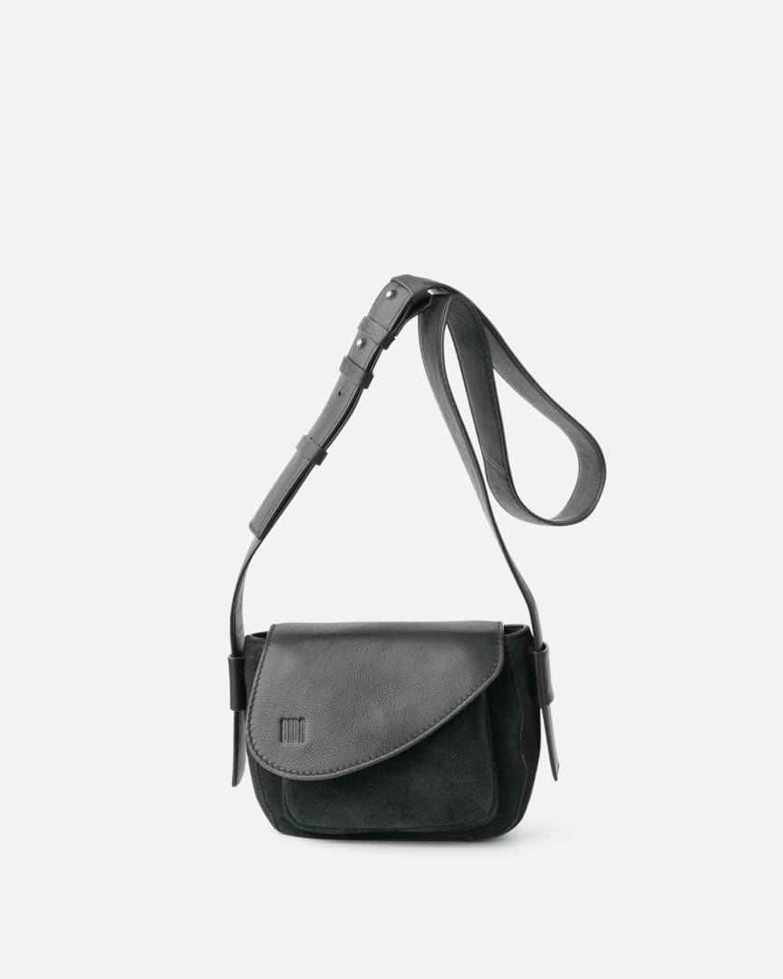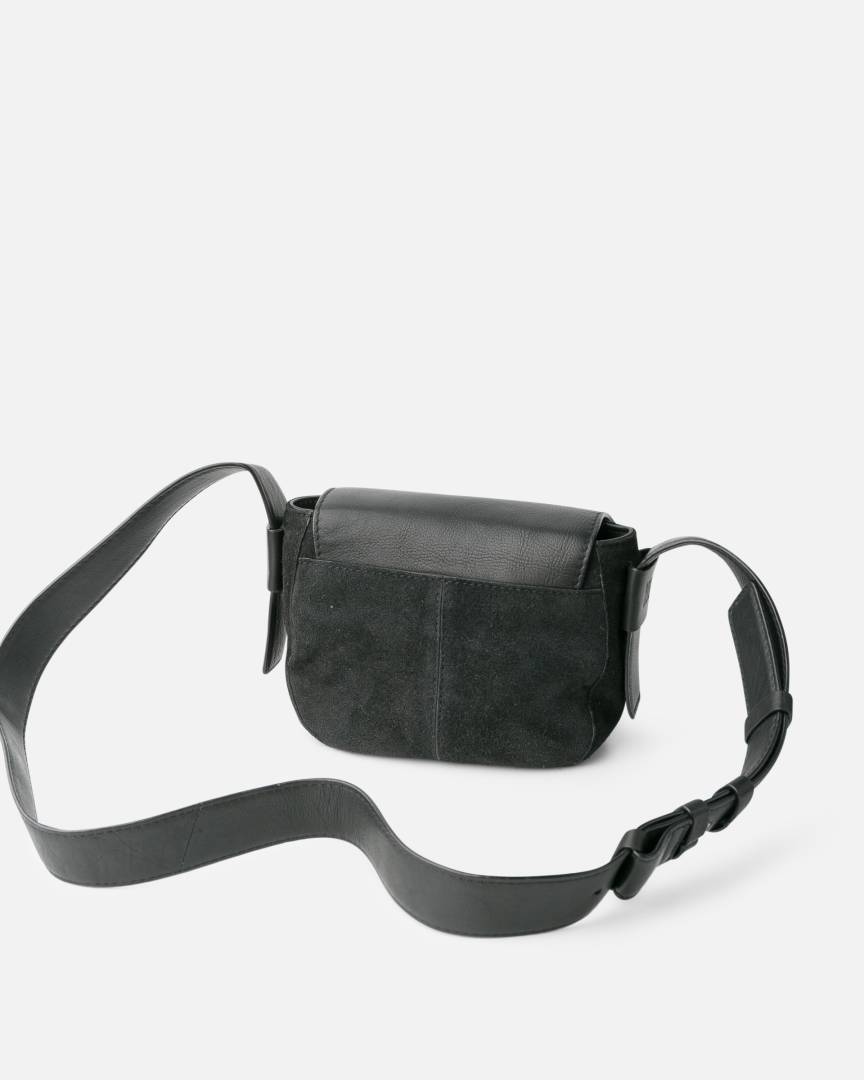 Washed cowhide and suede crossbody bag.