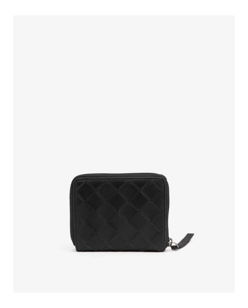 Washed, vegetable-tanned, and hand-braided cowhide leather medium wallet.