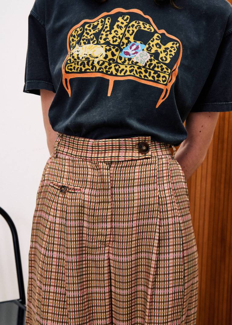 Straight plaid pants.