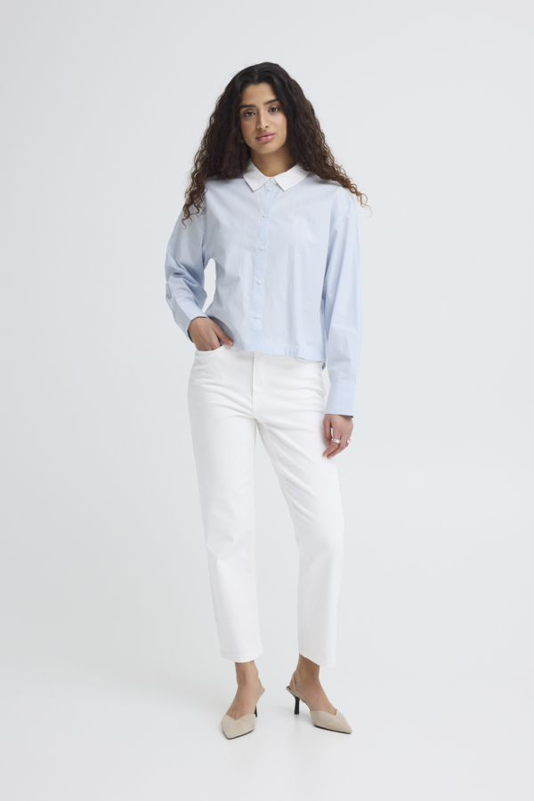 Cropped jeans featuring a straight leg silhouette, classic five-pocket design, and a fitted waist with belt loops. Button-and-zip closure ensures a secure fit. Smooth finish, ankle length.