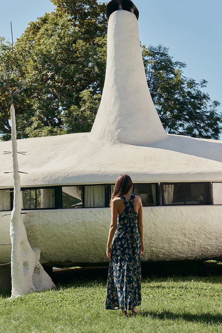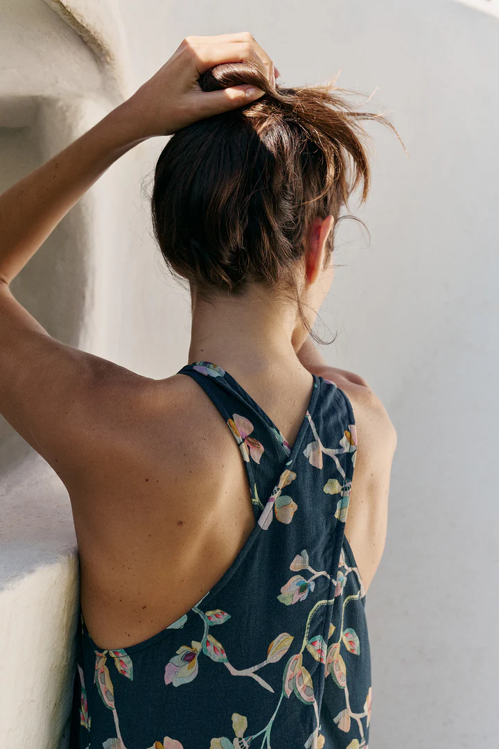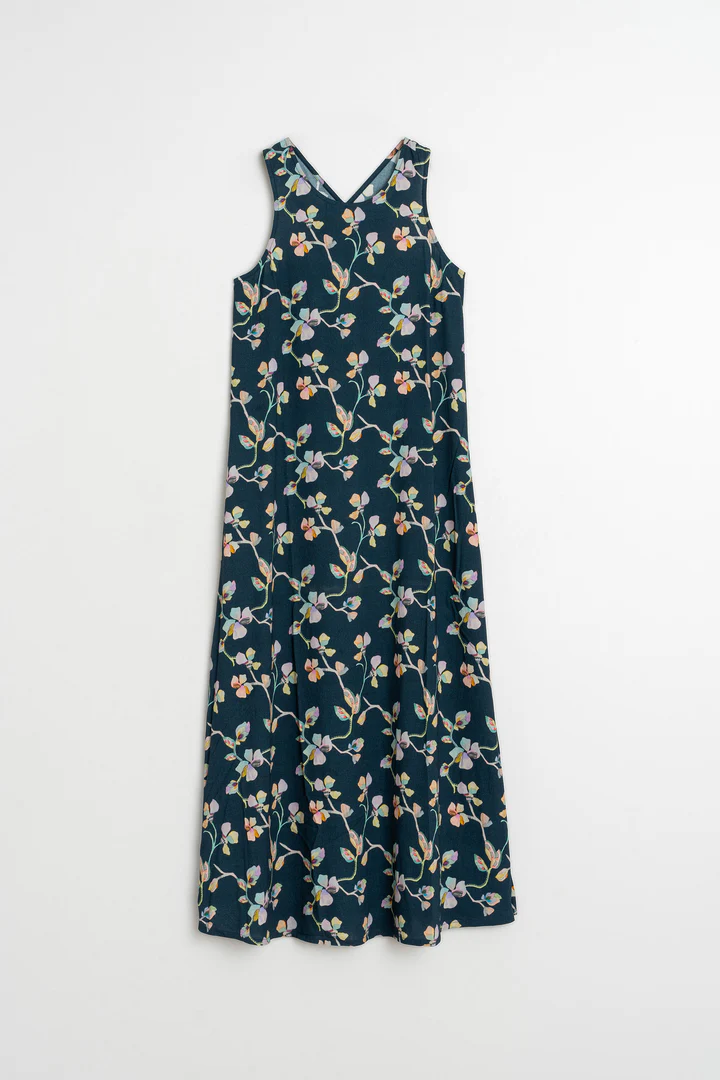 Maxi dress with a crossover neckline at the back. Fitted at the top and flowy at the bottom. Created with sustainable viscose fabric in a floral print.