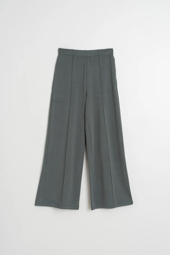 A flowy pant with center ribbing and an elastic waistband. You can combine it with the tee from the same series for a total look, or with any piece from our collection.