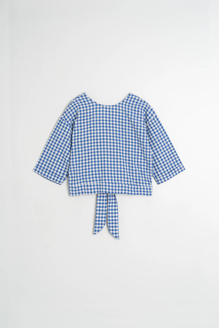 Crop shirt with a multiposition tie closure made of cotton in gingham check. It has turned-up, 3/4 sleeves and a super comfy fabric that will elevate any look.