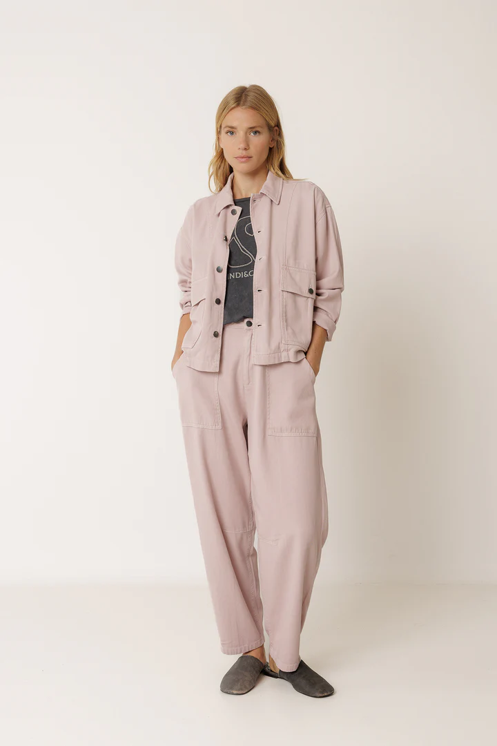 A carrot-style pant that combines design with comfort. The pocket details and front stitching add a special touch, ideal for pairing with the jacket from the same series.
