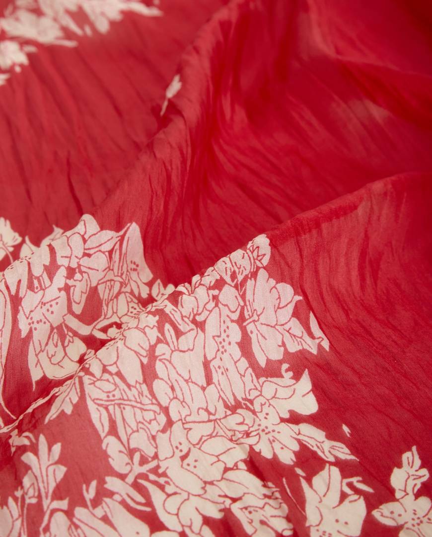 Floral print in red with sateen finish.