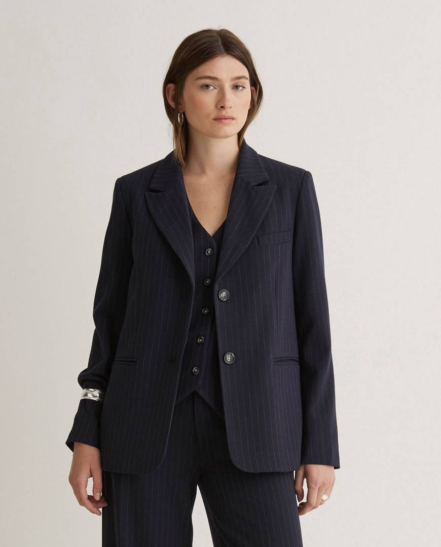 Pinstripe blazer.