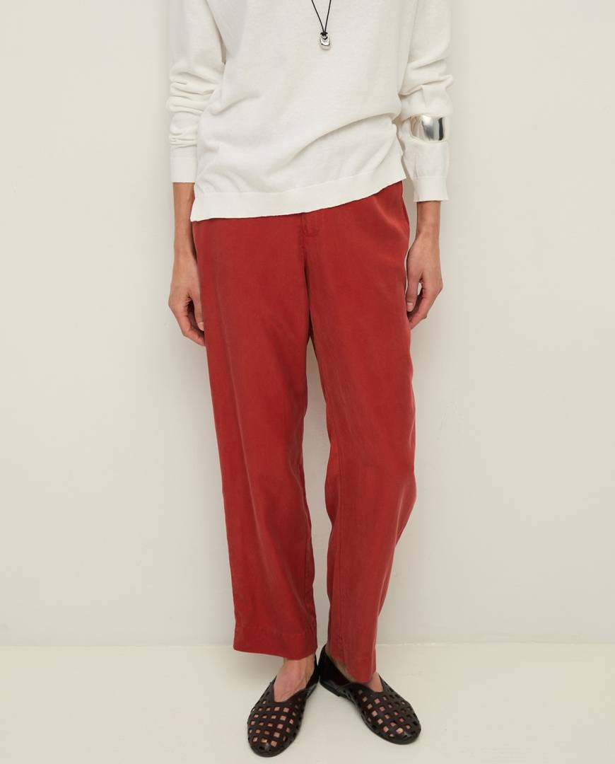 Red regular-fit trousers.